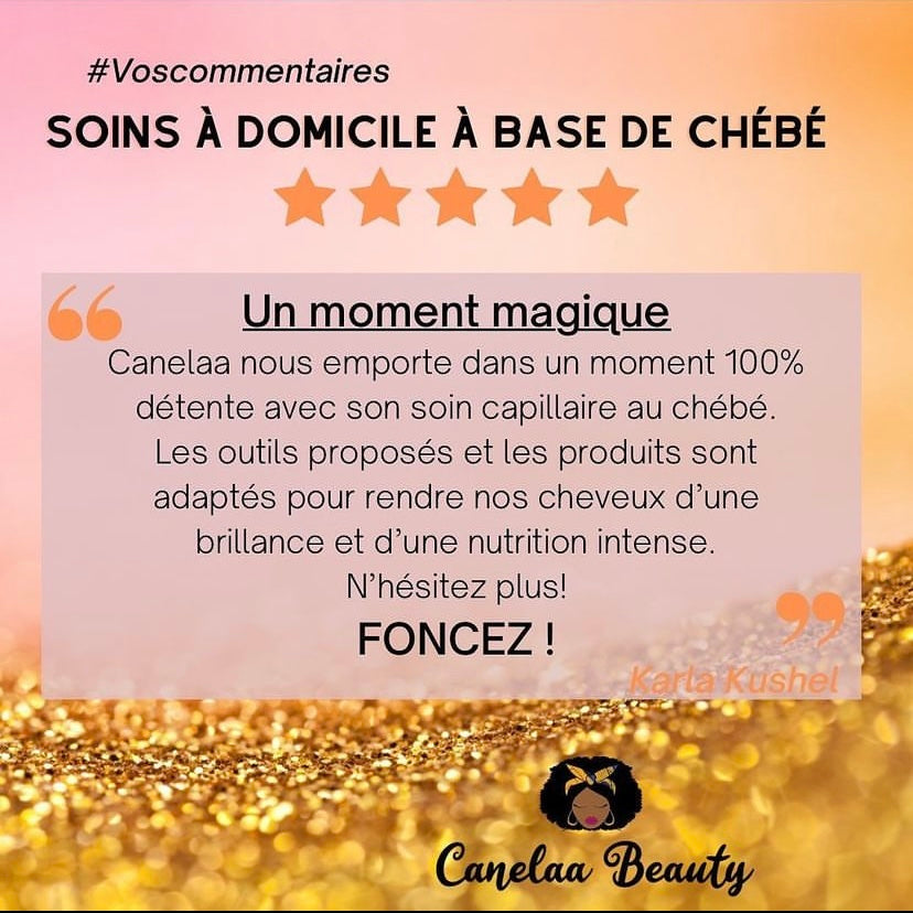 Canelaa Beauty : La beauté naturelle au cœur de vos cheveux. Grâce au Chébé, ingrédient miracle du Tchad, nos soins nourrissent en profondeur et réparent les cheveux abîmés. Pour toute la famille, nous proposons des gammes spécifiques : cheveux, barbe, et des soins adaptés aux enfants. À domicile, profitez de nos lissages, de nos soins fortifiant sur mesure, de la thérapie du cuir chevelu par Hairneedling et diagnostics capillaires personnalisés.